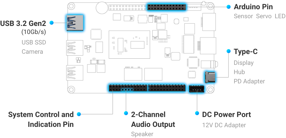 the wonderful sound. Other main interfaces include HDMI, Type-C, Arduino pin, digital I/O, COM port (which supports RS232), etc.