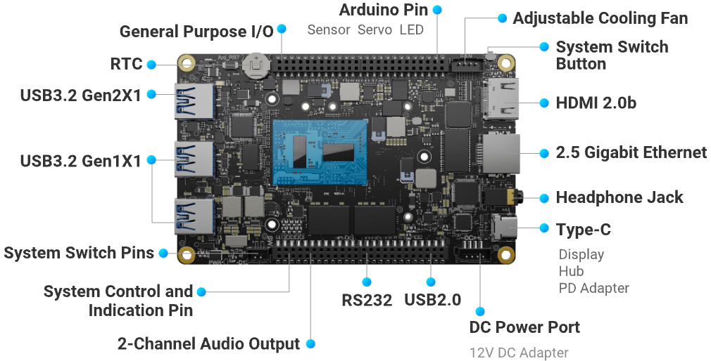 This single board computer uses 2933MHz high-frequency LPDDR4 RAM — up to 8GB - for a super-fast, smooth performance. The storage is also doubled — up to 64GB — for more software and